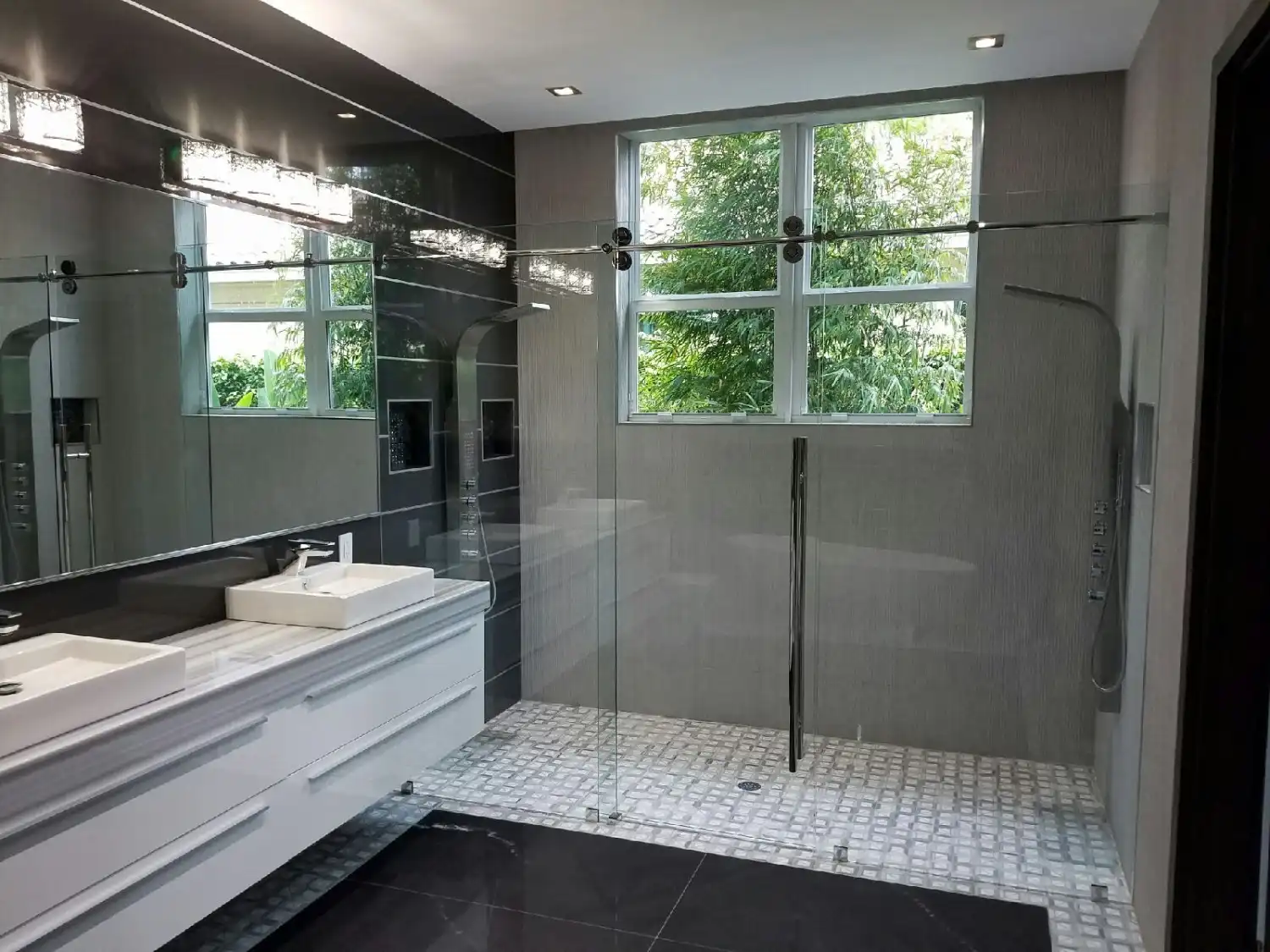 Whether you prefer hinged doors, sliding enclosures, or fully customized layouts, frameless shower doors can be tailored to perfectly fit your bathroom dimensions. Each installation is designed to align seamlessly, offering smooth operation and precise finishing that enhances the overall aesthetic.